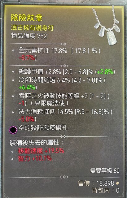 標題[競標] D4 S1 法師項鍊 減耗 冷卻 吞噬2