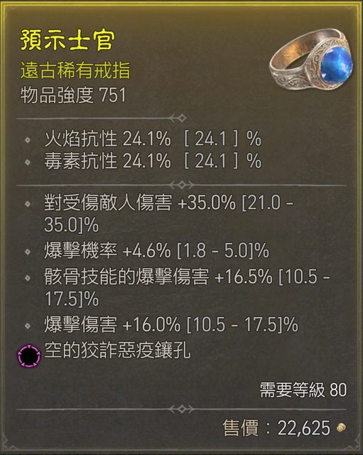 標題[競標] D4 S1 爆率/骸骨爆傷/爆傷 三近頂戒指