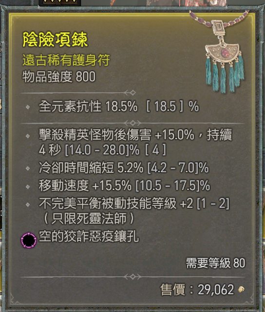 標題[競標] D4 S1 死靈不完美 冷卻 跑速 項鍊