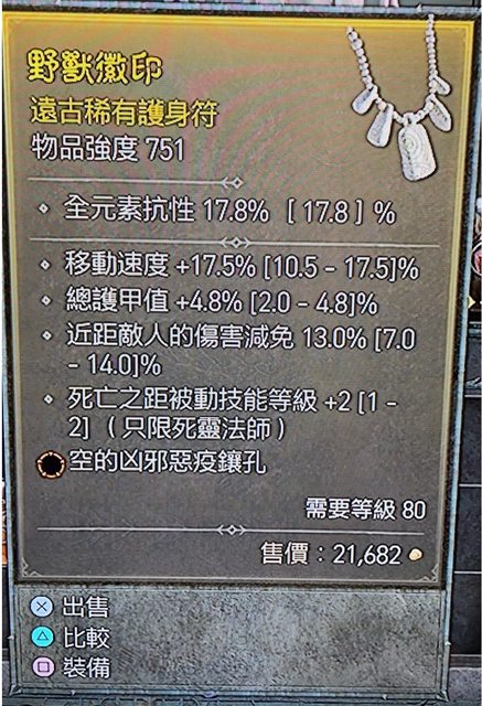 [競標] D4 S1 項鍊 2頂1高Roll/移速 護甲 近減/橘孔