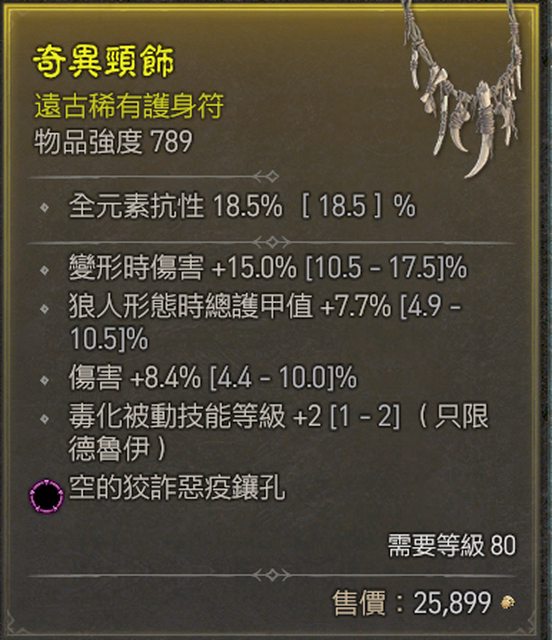 標題[競標] D4 S1 項鍊 毒化 狼人護甲 狡詐孔