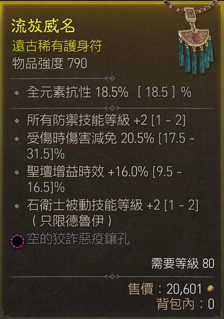 標題[競標] D4 S1 炸盾護身符 防禦/石衛士/受傷減