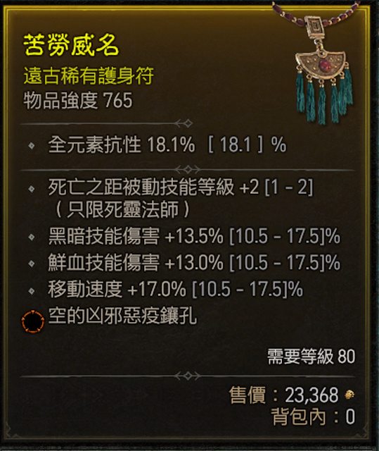 標題[競標] D4 鮮血死靈 不用洗 頂跑護符