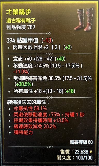 標題[競標] D4 閃2/跑速/頂全屬/近頂受傷減免/意志鞋