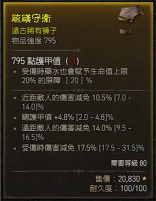 標題[競標] D4 賽季 頂護甲 三減屏障褲