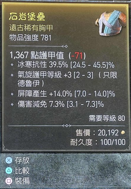 標題[競標] D4S1 三件胸甲 屏障產生、大地壁壘