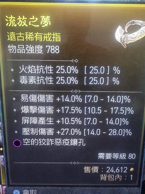 標題[競標] D4 S1紫洞戒指 頂爆/易傷/壓制