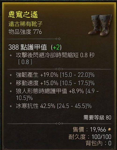 標題[競標] D4 S1 德魯伊鞋 移速 狼人護甲 強韌產生