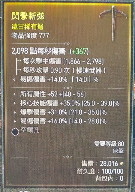 標題[競標] D4 賽季 頂 全屬 核心 爆傷 雙手弩