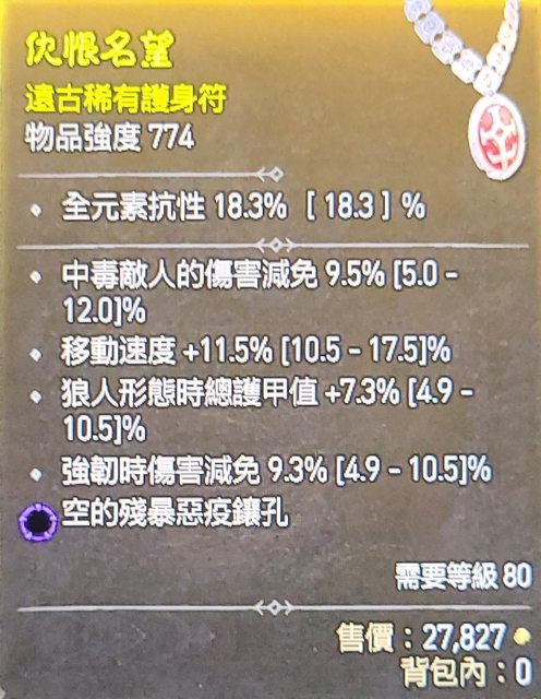標題[競標] D4 S1 項鍊 移速 狼甲 毒減 強韌減 (殘暴
