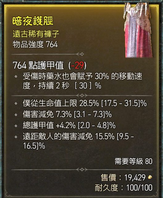 標題[競標] D4 S1 褲子 頂減免/護甲/遠減/僕從生命