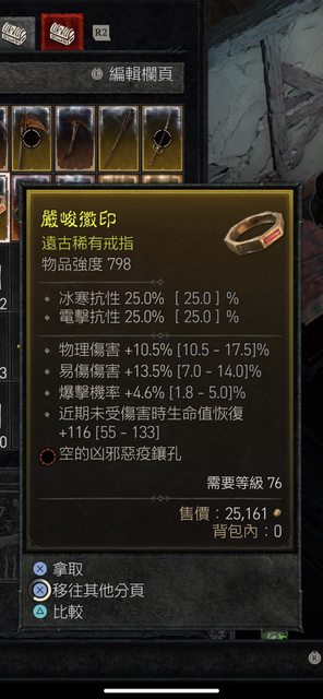 標題[競標] D4 S1 近頂爆率易傷 底物傷紅洞戒指