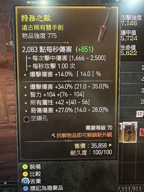 標題[競標] D4 S1 死靈雙手劍 近滿爆傷/滿智/近滿易