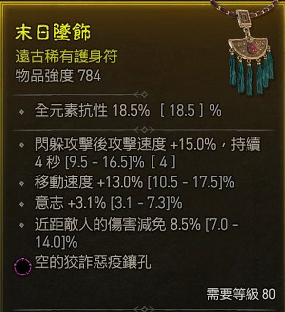 標題[競標] D4 S1 項鍊 閃躲加速/移速/意志/近減 紫