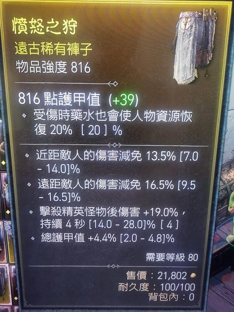 物 品:憤怒之狩 褲子