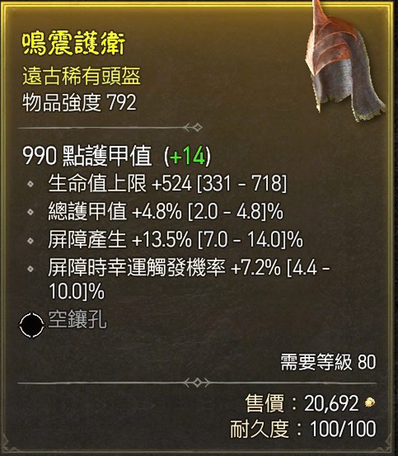 標題[競標] D4 S1 頭盔 頂護甲/近頂屏障/生命