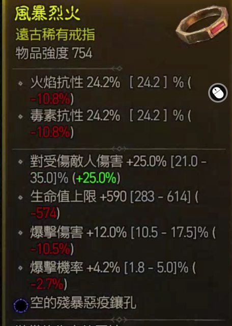 物 品:高生命/高爆率/爆傷-殘暴 藍孔戒