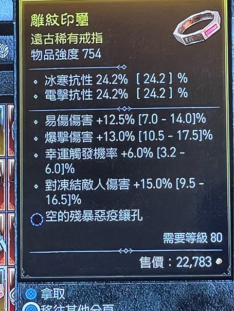 標題[競標] D4 幸運頂/易傷/爆傷 藍孔戒子