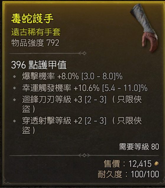 標題[競標] D4 S1 手套 爆率/幸運/迴鋒