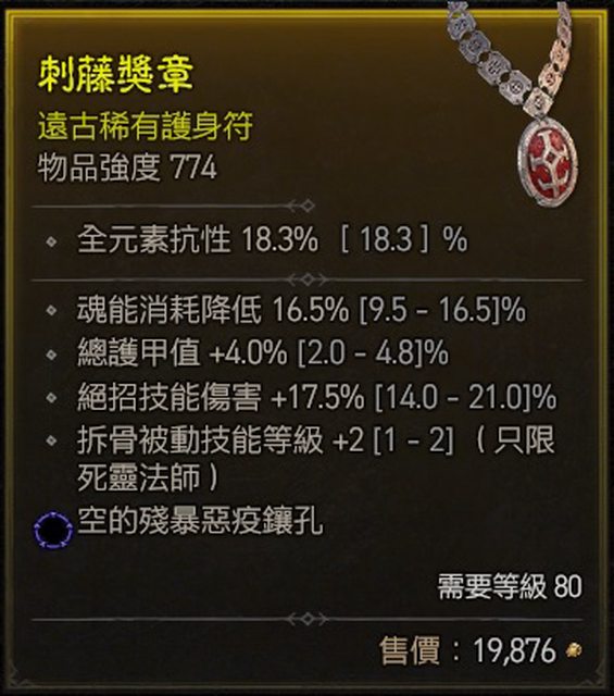 標題[競標] D4 S1 項鍊 拆骨+2/頂魂減/近頂護甲% 藍