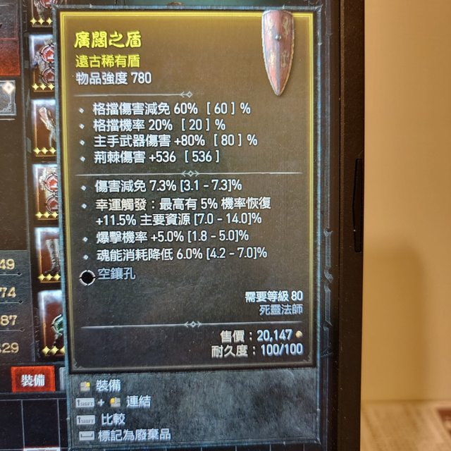 標題[競標] D4 S1 強度780 死靈傷減 爆擊 魂能頂盾