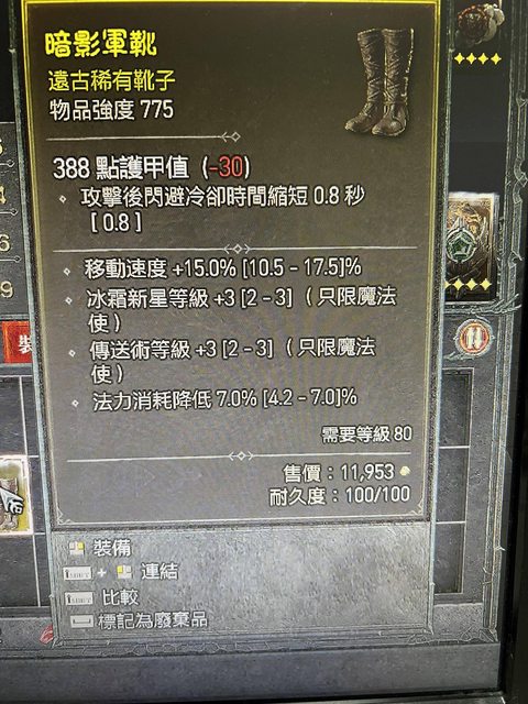 標題Re: [競標] D4 S1 法師鞋冰霜3傳送3跑速+減魔
