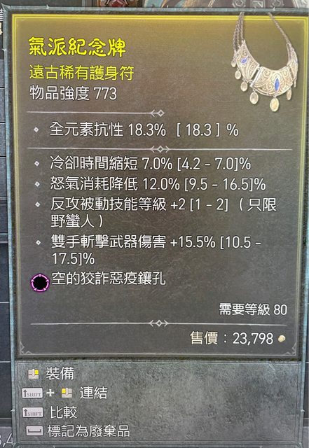 標題[競標] D4 S1 野蠻人項鍊 頂冷卻 、怒氣