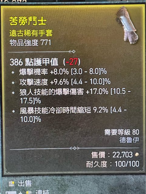 物 品:滿爆 ,90%以上高roll 攻速&風暴冷卻&狼人 手套