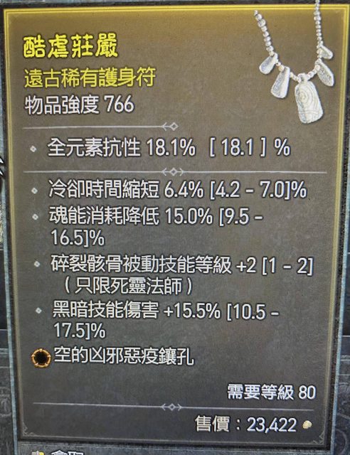 標題[競標] D4S1 護身符 冷卻 魂能降低 碎裂骸骨