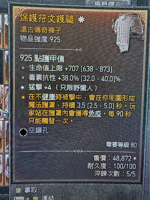 物 品:生命 707 / 毒抗 38% /太古猛擊+4