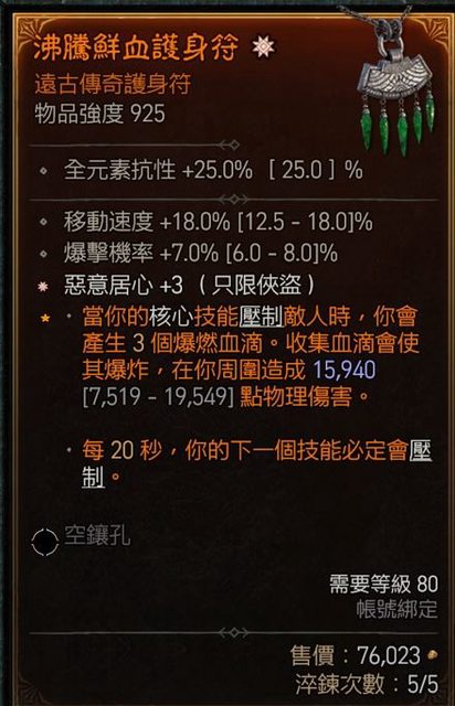 標題[競標] D4 S4 太古惡意+3 爆率 移速項鍊