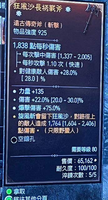 1.雙太古力量爆傷單手斧 2e