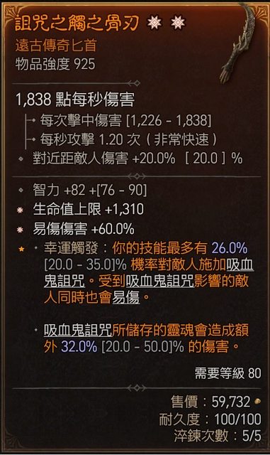 物 品:雙太古匕首(易傷/生命)