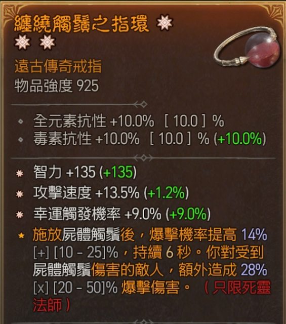標題[競標] D4 S4 三太古戒指(智力 攻速 幸運觸發)