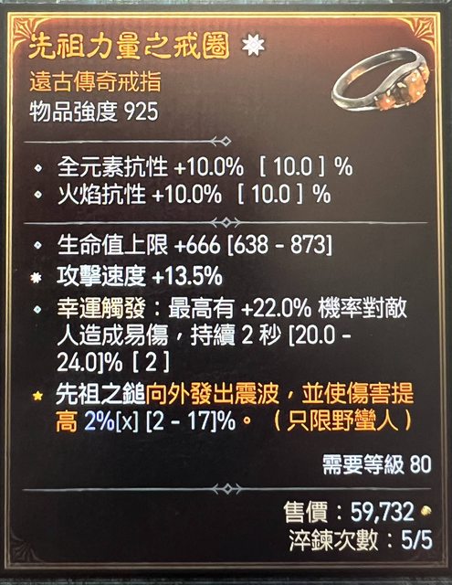 標題Re: [競標] D4太古攻速+幸運觸發+生命戒指