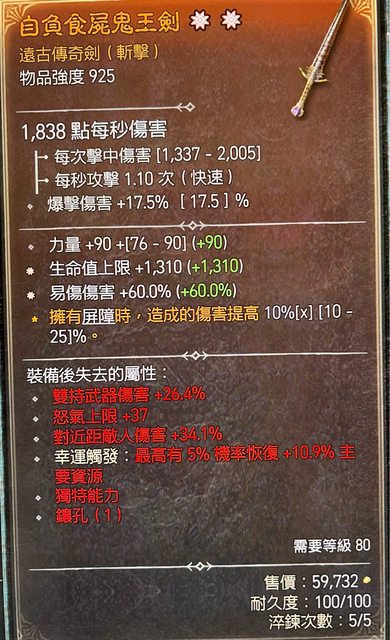 物 品:雙太古單手劍 易傷/生命值