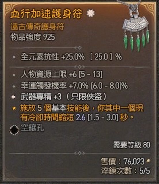 標題[競標] D4 S4 護身符 太古*武器專精/幸運觸法7%