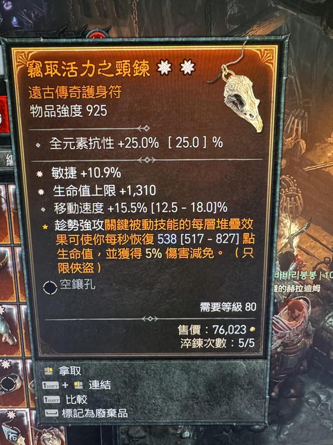 項鍊(*敏/*生命/移速)