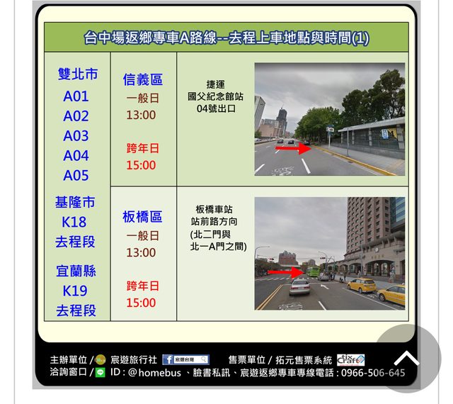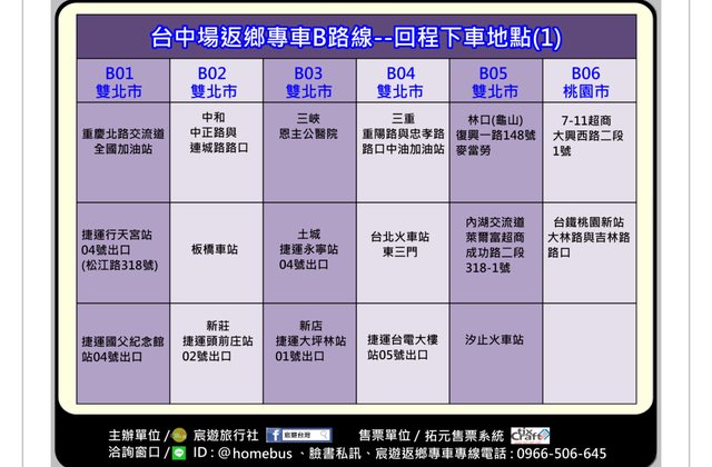 地點:板橋來回台中-信義區、板橋上車;中和、板橋、新莊下車(A02+B02)