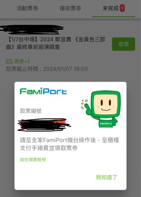 備註:因身體不適無法前往,尚未取票。