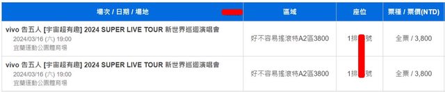 標題[售票] 【售】告五人 好不容易A2一排*2