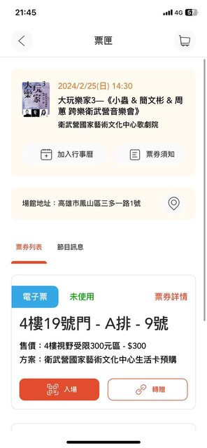 交易方式:Opentix app電子票轉讓