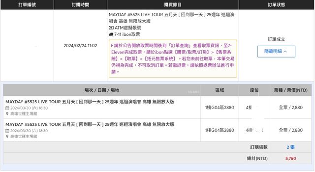 標題[售票] 五月天 回到那一天演唱會 3/30 2880*2