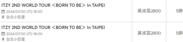 位置:黃3E區5排*2,黃3F區12排*2