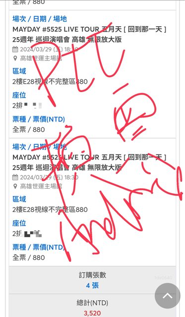 五月天3/29 880*2/4第2排換3/30 880*2/4
