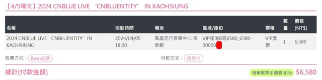 標題[售票] 【售】CNBLUE搖滾VIP B序號前百