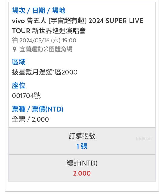 標題[售票] 3/16告五人宜蘭場 2000降售1800*1