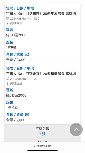 位置:綠區513第1排9/10號