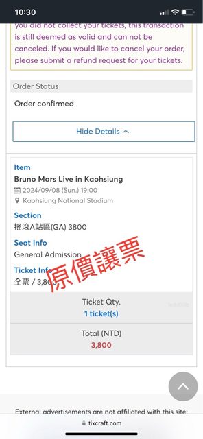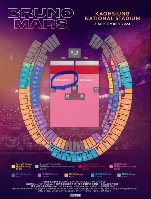 標題[售票] Bruno Mars 火星人9/8 3800搖滾區