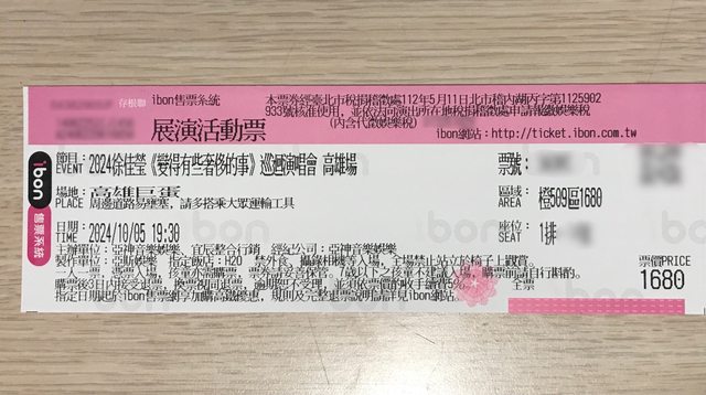 標題[售票] 徐佳瑩1680*1/Bruno Mars 4800*1